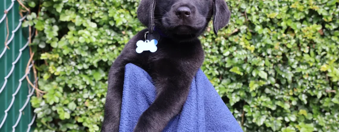 Meet Brooks, your new sponsored puppy – what a face! He was born January 27, is a black labrador/golden cross and went home Friday with Tammy and Mark.